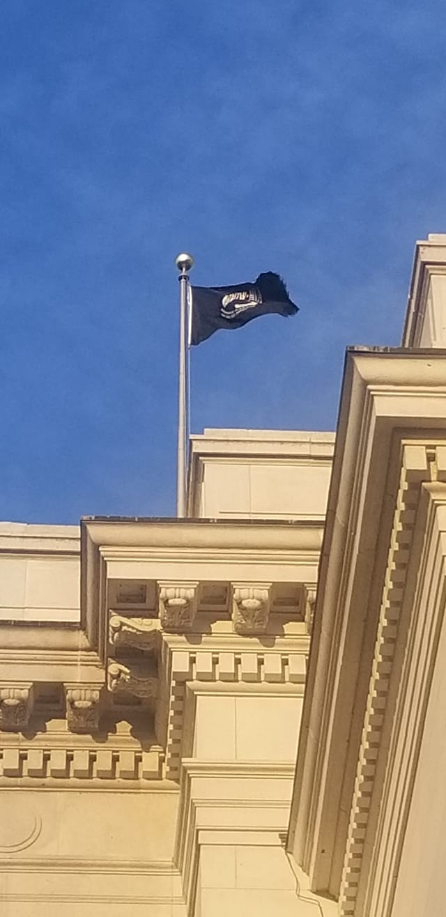 The condition of the POW MIA flag at the Wisconsin State Capitol is an omen of how far behind our Capitol has fallen with proper flag procedures. Veterans spend countless hours caring for flags and preparing for ceremonies as rifle teams. The Capitol is our representation to the nation of our token of appreciation for those who entered into service from Wisconsin. With the recent undermining by our Governor with flying three flags on one staff that breaks proper flag protocol, it makes me wonder where Tony Evers stands as an American. When our leaders neglect to properly care for our flags, the first question should be, “What kind of leader lets our flags fly to the point of becoming tattered?”