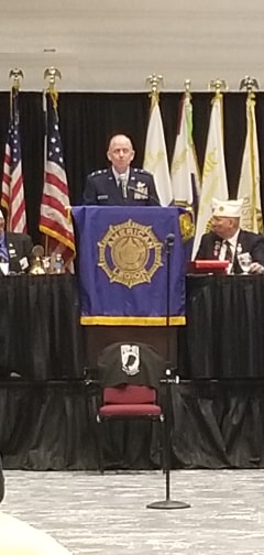 At 0926 hours, Major General Dunbar presented to Legionnaires a slideshow of the various facets of our Wisconsin National Guard who proudly proclaimed, “the 115th Fighter Wing is scheduled to receive F35 Fighter Jet; the second National Guard unit in the nation, which is the sixth to receive in the Air Force.”